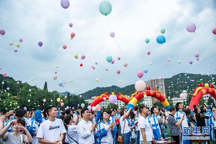 1/06月9日,烏當(dāng)中學(xué)高三學(xué)生放飛氣球。(新華社記者 陶亮/攝)