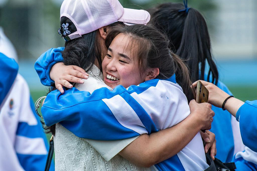 1/06月9日,烏當(dāng)中學(xué)高三學(xué)生和老師擁抱。(新華社記者 陶亮/攝)