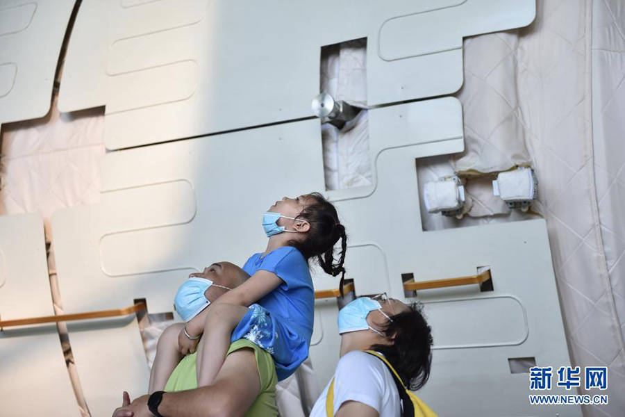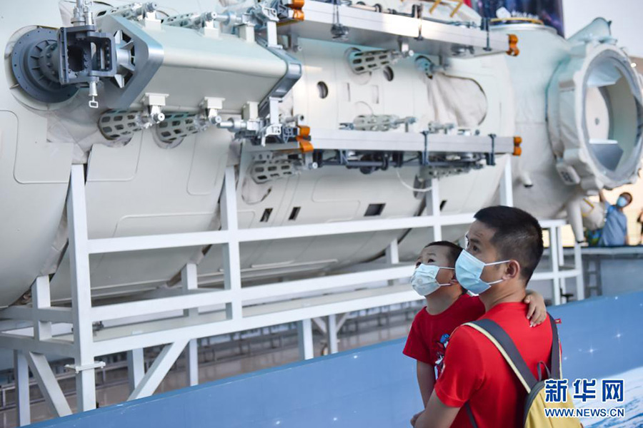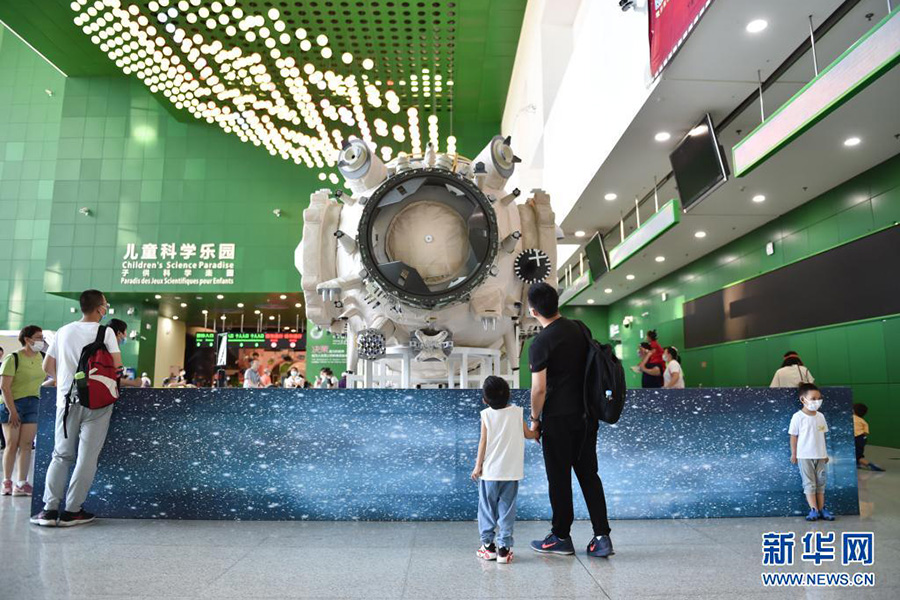 1/06月19日,不少家長(zhǎng)帶著孩子來(lái)到位于北京市朝陽(yáng)區(qū)的中國(guó)科學(xué)技術(shù)館,參觀“天和核心艙”結(jié)構(gòu)驗(yàn)證件實(shí)物,了解中國(guó)空間站相關(guān)知識(shí)。(新華社記者 陳鐘昊/攝)
