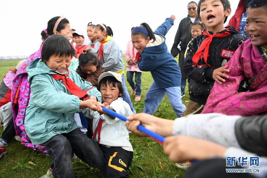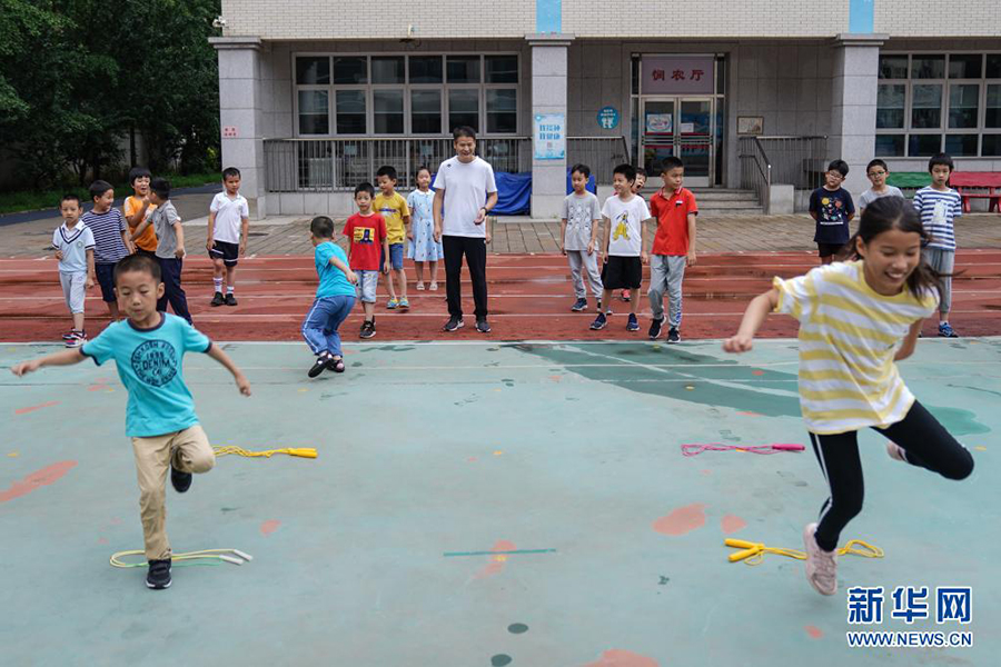 1/07月19日,在北京小學(xué)廣外校區(qū),教師帶領(lǐng)孩子開(kāi)展室外體育活動(dòng)。(新華社記者 彭子洋/攝)