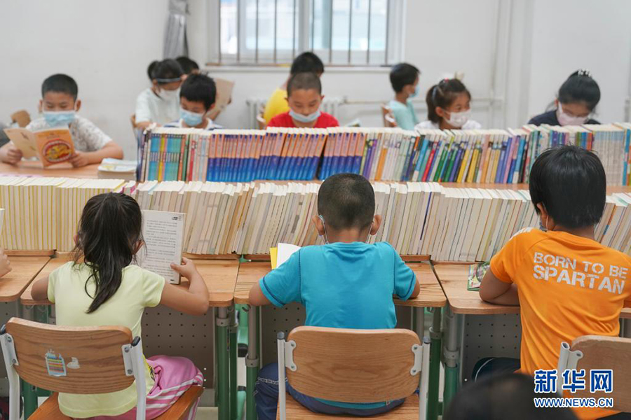 1/07月19日,孩子們?cè)诒本┬W(xué)廣外校區(qū)閱覽室看書(shū)。(新華社記者 彭子洋/攝)