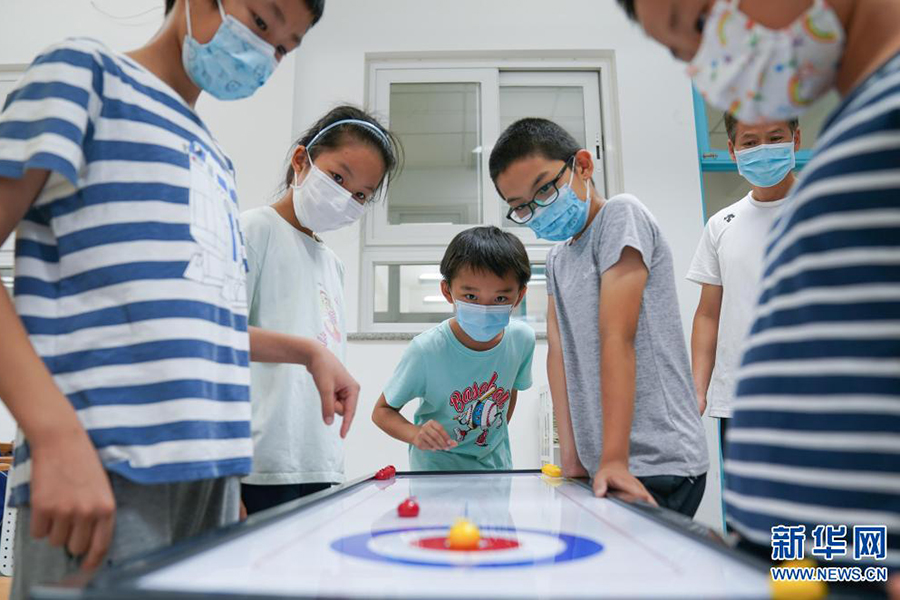 1/07月21日,在安徽省合肥市和平小學(xué)第二小學(xué)少年宮,孩子們在暑托班里進(jìn)行足球訓(xùn)練。為緩解未成年人暑期“看護(hù)難”問題,合肥市瑤海區(qū)依托轄區(qū)新時(shí)代文明實(shí)踐所(站)和學(xué)校少年宮作為試點(diǎn),免費(fèi)提供音體美興趣培養(yǎng)、公益看護(hù)、讀書賞析、作業(yè)輔導(dǎo)、科技創(chuàng)新等為主要內(nèi)容的“五彩假日”托管和教育服務(wù),讓孩子們快樂過暑假。(新華社發(fā) 解琛/攝)