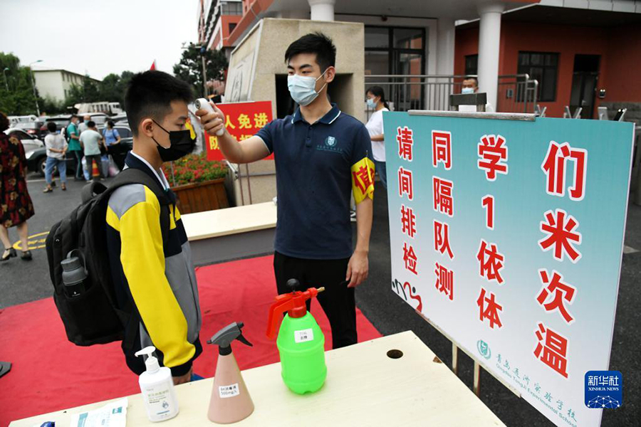 1/08月31日,黔西市文峰街道惠風學校舉行新學期升旗儀式。連日來,貴州省黔西市中小學在嚴格疫情防控的條件下陸續(xù)開學。各學校在教育主管部門的組織下進行校園消殺、教材分發(fā)、后勤保障等工作,并開展多彩迎新生活動。(新華社發(fā) 范暉/攝)