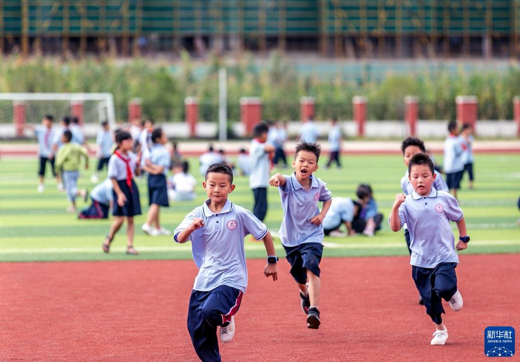 1/08月31日,黔西市文峰街道惠風學校學生課間在操場活動。(新華社發(fā) 范暉/攝)