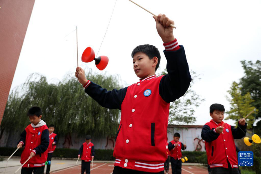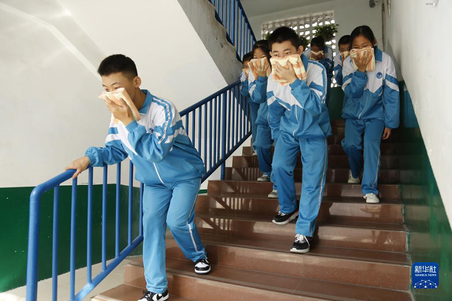 1/010月13日,河北省邢臺市第七中學(xué)學(xué)生參加疏散演練。(新華社發(fā) 張馳/攝)
