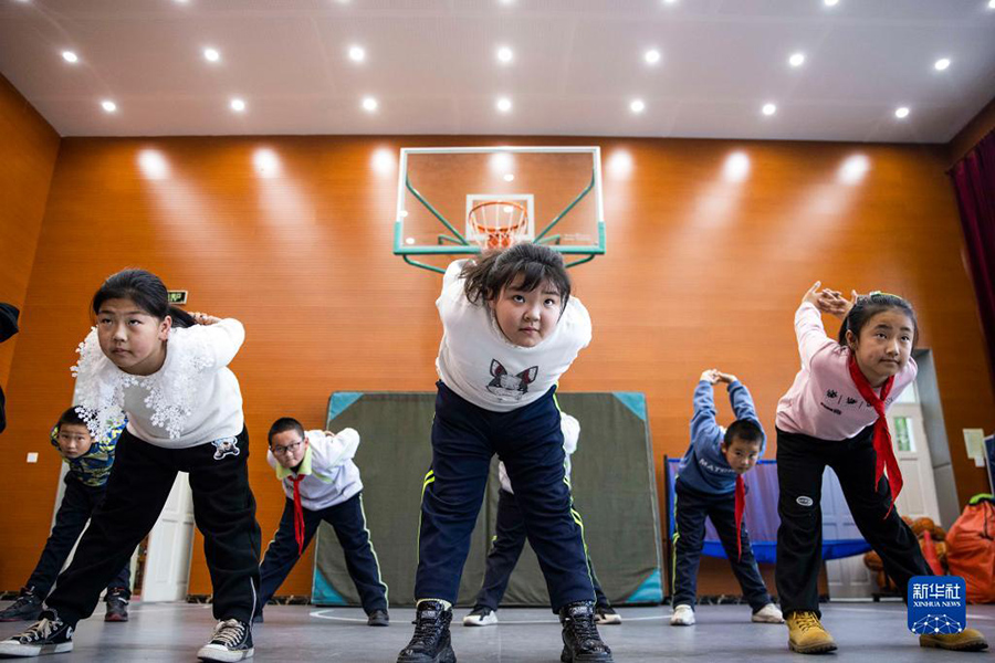 1/010月27日,學(xué)生在哈爾濱市榆樹(shù)鎮(zhèn)中心校新鄉(xiāng)小學(xué)鄉(xiāng)村學(xué)校少年宮學(xué)習(xí)健美操。(新華社記者 張濤/攝)