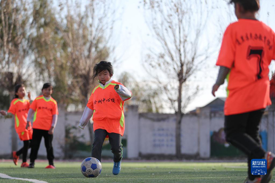 1/010月27日,學(xué)生在哈爾濱市榆樹(shù)鎮(zhèn)中心校新鄉(xiāng)小學(xué)鄉(xiāng)村學(xué)校少年宮參加足球訓(xùn)練。(新華社記者 張濤/攝)