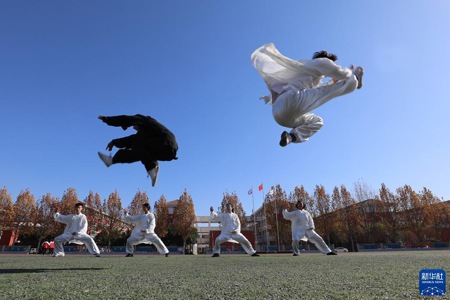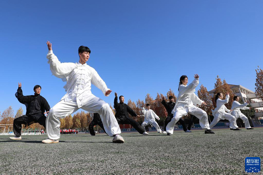 11月23日,焦作市溫縣一中太極拳社團的學生在習練太極拳。(新華社發(fā) 徐宏星/攝)