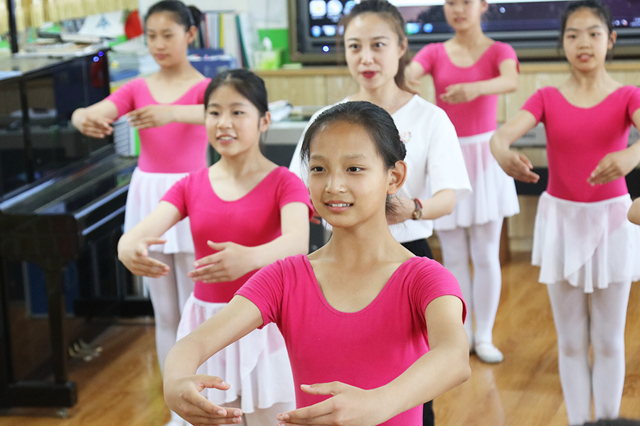 1/0在北京市密云區(qū)北莊鎮(zhèn)中心小學(xué)寬敞明亮的舞蹈教室里,音樂兼舞蹈教師正在對(duì)孩子們進(jìn)行舞蹈基本功訓(xùn)練。從2014年9月開始,北京市密云區(qū)北莊鎮(zhèn)中心小學(xué)本著“舞蹈屬于所有孩子”的原則,開發(fā)舞蹈校本課程,以民族舞為方向,一至六年級(jí)全部開設(shè)舞蹈課,讓舞蹈成為落實(shí)立德樹人、傳承紅色基因的重要途徑。(本報(bào)記者 樊世剛/攝 通訊員 趙長順/文)