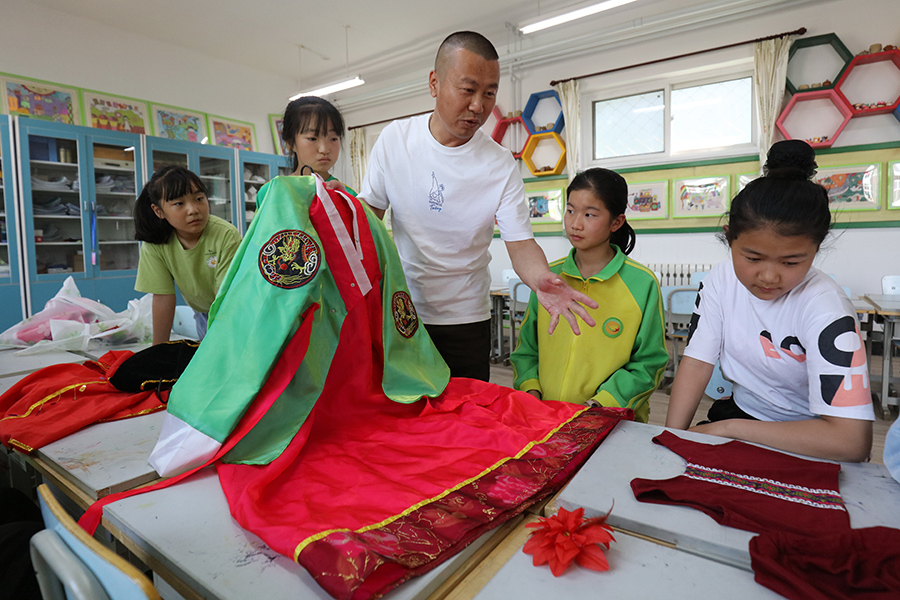 1/0圍繞舞蹈教育,學(xué)校美術(shù)社團(tuán)學(xué)生在教師指導(dǎo)下學(xué)習(xí)、了解各民族服飾特點(diǎn)。(本報(bào)記者 樊世剛/攝 通訊員 趙長順/文)