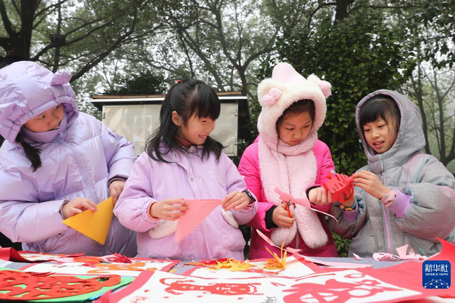 1/01月19日,在江蘇省揚(yáng)州市春江社區(qū),非遺傳承人指導(dǎo)孩子們學(xué)習(xí)剪紙。寒假期間,各地學(xué)生參加多彩文體活動(dòng),增長知識、強(qiáng)健體魄,樂享假期生活。(新華社發(fā) 孟德龍/攝)