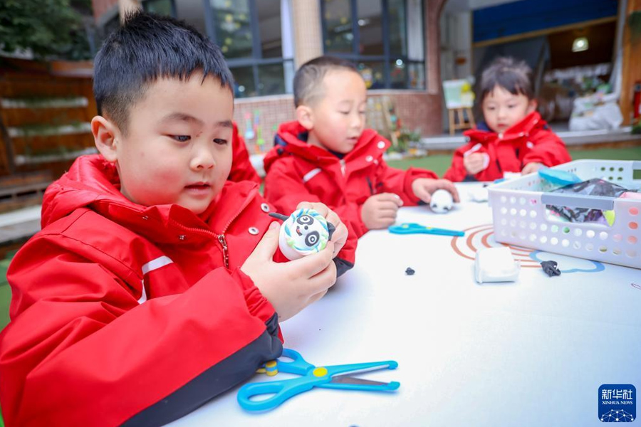 1/02月17日,四川省遂寧市順城街幼兒園開展“萌娃慶冬奧 我來捏冰墩墩”開學(xué)第一課主題活動(dòng)。(新華社發(fā) 劉昌松/攝)