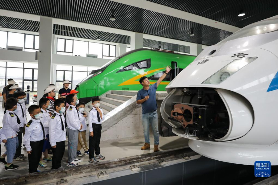 1/08月26日,來自陜西西安部分學校的22名小學生在西鐵教育培訓基地參觀。(新華社發(fā) 劉翔/攝)
