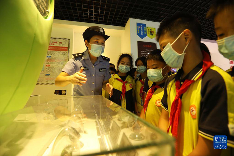 1/09月1日,在貴州省赤水市天臺學(xué)校,民警給學(xué)生講解新型毒品相關(guān)知識。(新華社發(fā) 王長育/攝)