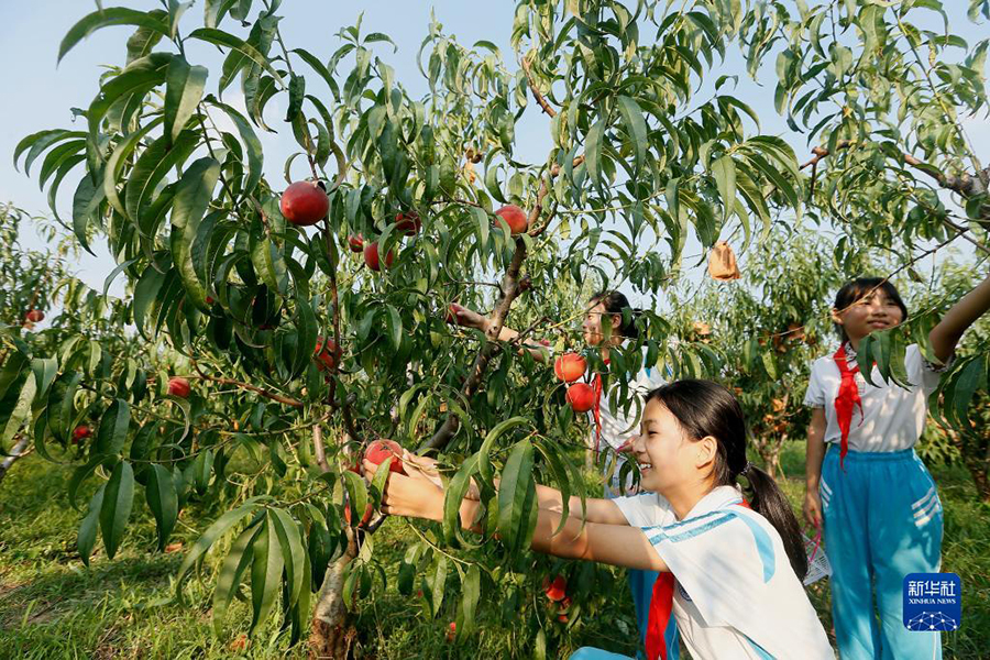 1/09月1日,山東青島藍(lán)谷高新區(qū)東皋埠小學(xué)的學(xué)生在即墨區(qū)靈山街道沃家泊子村潤豐農(nóng)場體驗(yàn)田間課堂。(新華社發(fā) 梁孝鵬/攝)