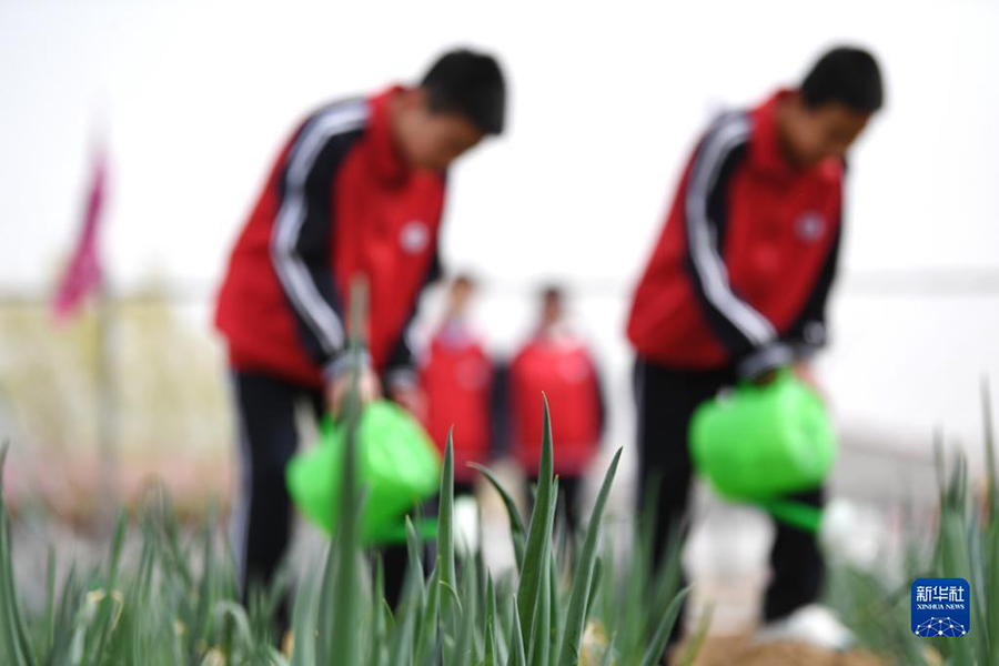 1/04月10日,學(xué)生在河北省張家口市懷來(lái)縣桑園中學(xué)勞動(dòng)實(shí)踐基地里體驗(yàn)農(nóng)耕。(新華社發(fā) 孫慧軍/攝)
