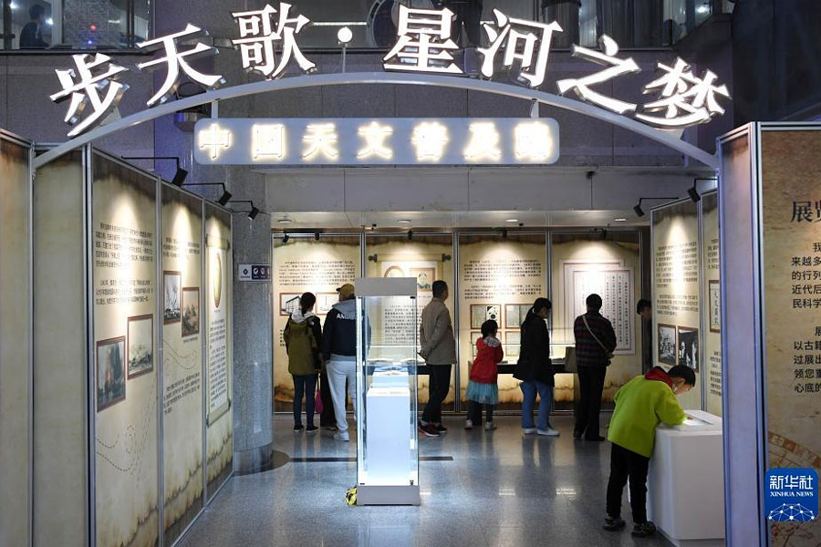 1/04月22日,小朋友在安徽省合肥市科技館參觀“步天歌·星河之夢”展覽,了解航天知識。(新華社發(fā) 陳三虎/攝)