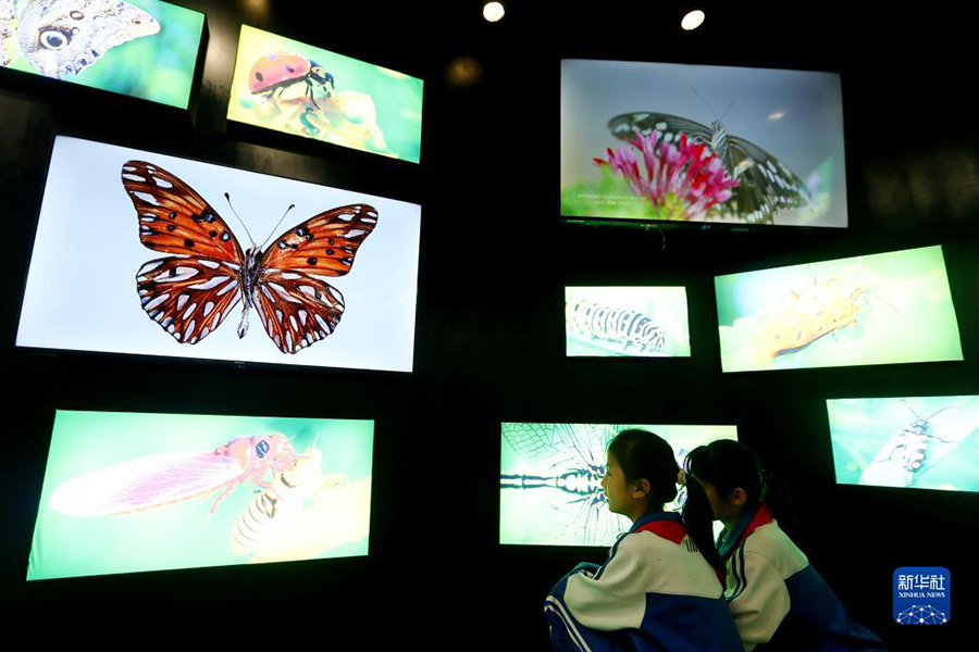1/05月22日,小學(xué)生在中國(guó)農(nóng)業(yè)科學(xué)院青島特種作物研究中心試驗(yàn)基地學(xué)習(xí)昆蟲知識(shí)。當(dāng)日是國(guó)際生物多樣性日,山東省青島市即墨區(qū)龍泉街道蓮花山小學(xué)組織學(xué)生來(lái)到中國(guó)農(nóng)業(yè)科學(xué)院青島特種作物研究中心試驗(yàn)基地,開展“走進(jìn)科普課堂、探索生物奧秘”主題教育活動(dòng)。通過(guò)學(xué)習(xí)生物食物鏈知識(shí)、觀察昆蟲玻片標(biāo)本、探索農(nóng)作物害蟲綠色防控技術(shù)等形式,提高學(xué)生們對(duì)生物多樣性的認(rèn)識(shí)。(新華社發(fā) 梁孝鵬/攝)