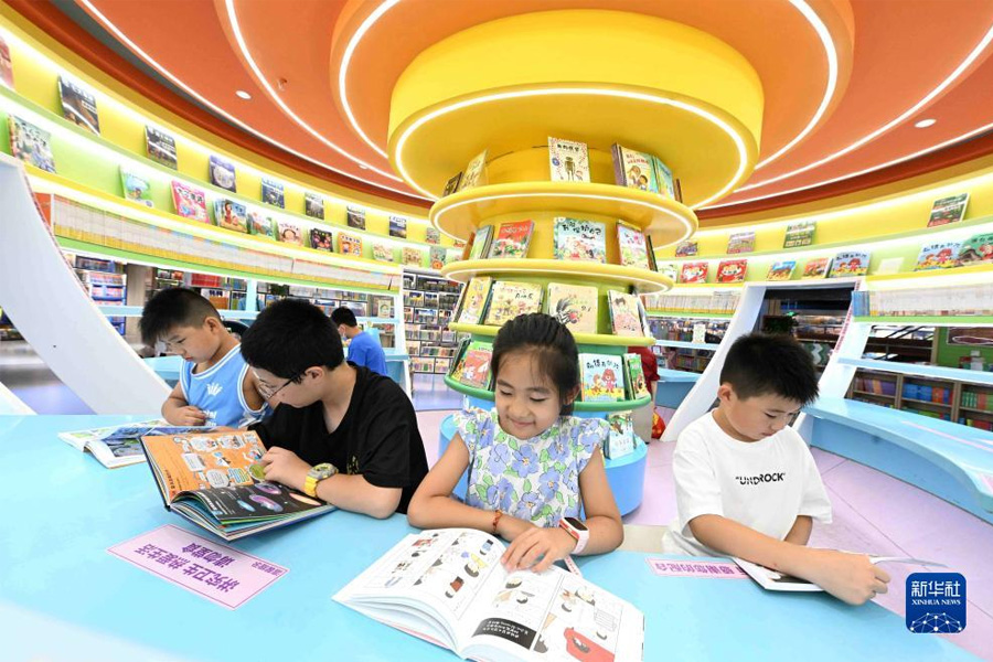 1/07月21日,在山東省臨沂市蘭山區(qū)銀雀山街道東苗莊社區(qū)暑假托管班,孩子們?cè)趯W(xué)習(xí)繪畫。(新華社發(fā) 許傳寶/攝)