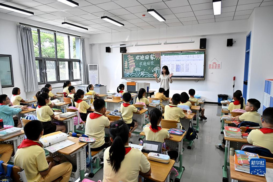 1/09月1日,北京第二實驗小學涭水河分校三年級3班學生在上課。(新華社記者 李鑫/攝)