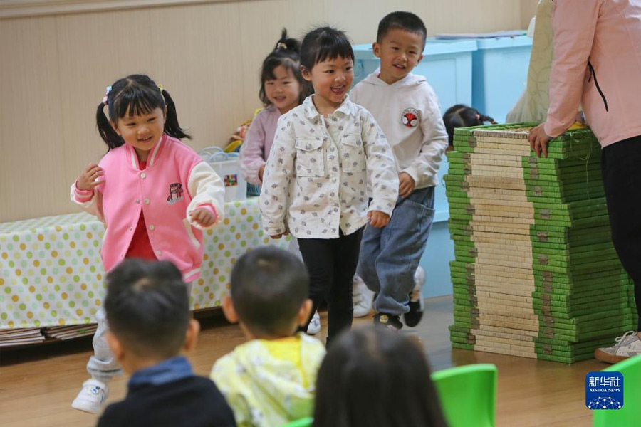 1/09月1日,在云南省昆明市西山區(qū)前衛(wèi)幼兒園,小朋友們在做分組游戲。(新華社記者 崔文/攝)