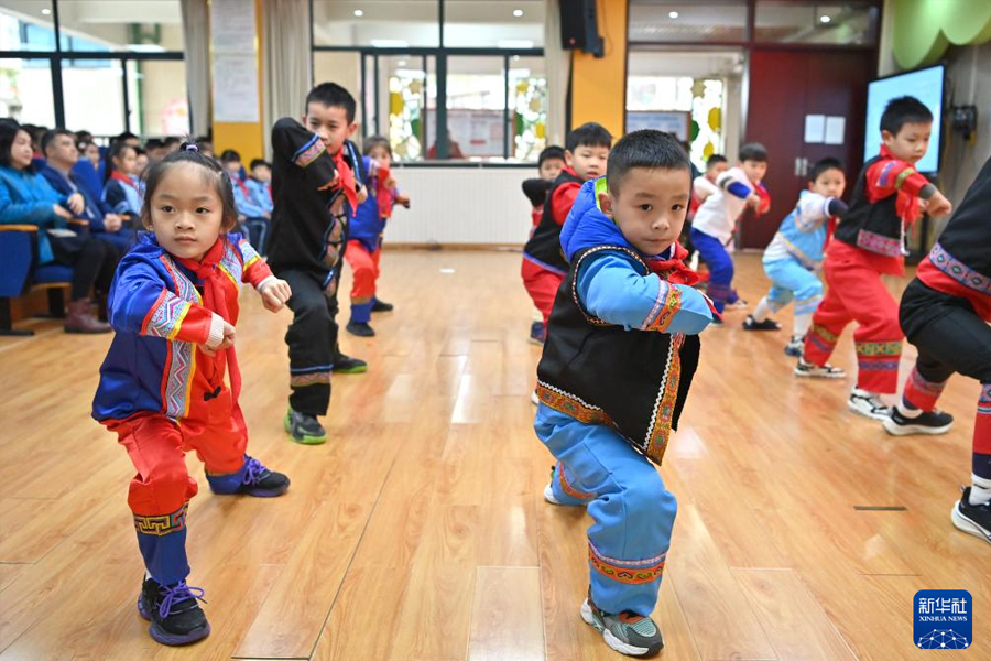 1/02月26日,在南寧市百花嶺路小學(xué)2024年春季學(xué)期開(kāi)學(xué)儀式上,孩子們表演壯拳。(新華社記者 周華/攝)