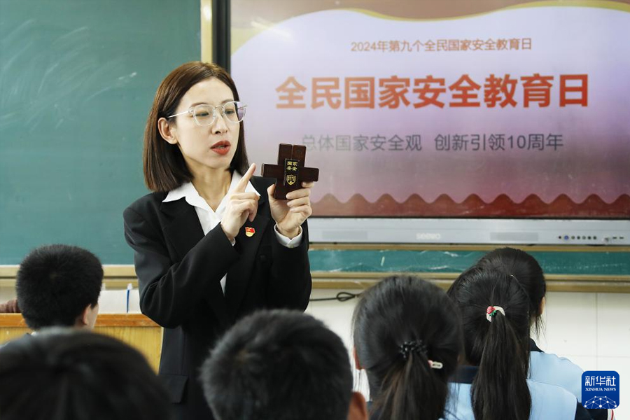 1/04月12日,山東省棗莊市市中區(qū)人民法院法官在東湖小學(xué)給學(xué)生們講解國家安全相關(guān)法律法規(guī)知識。全民國家安全教育日臨近,各地學(xué)校通過多種方式向?qū)W生普及國家安全相關(guān)法律法規(guī)知識,增強(qiáng)學(xué)生們對總體國家安全觀的認(rèn)識,共筑國家安全防線。(新華社發(fā) 孫中喆/攝)