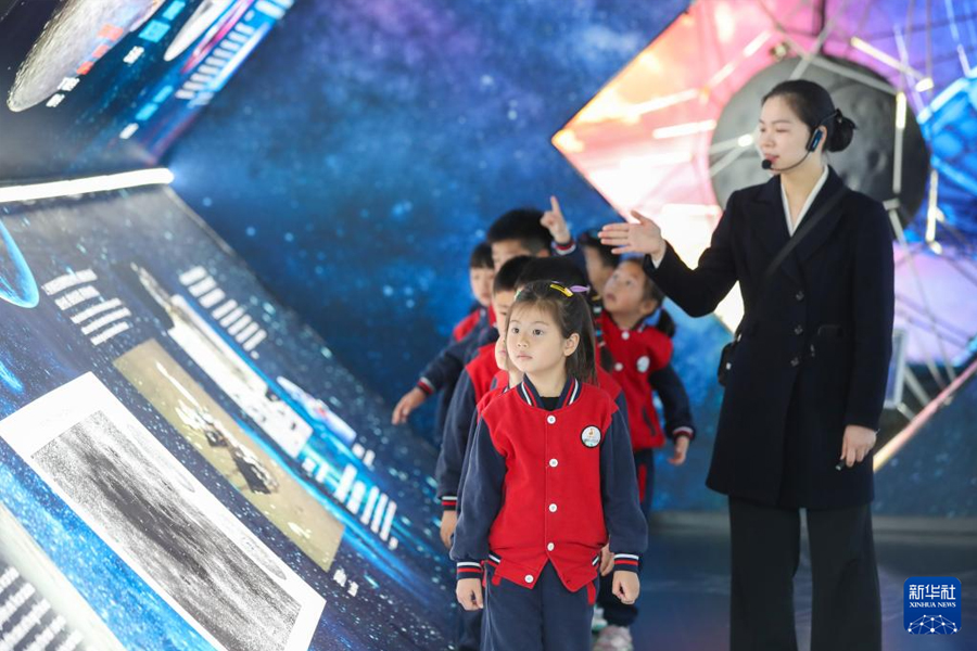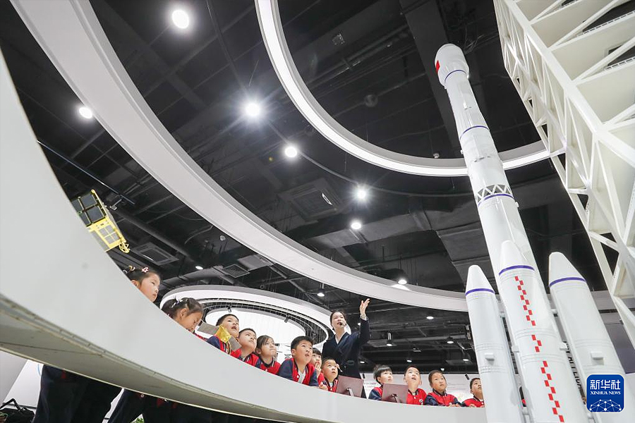 1/04月24日,浙江省湖州市德清縣地理信息科技館的工作人員為孩子們講解航天科技知識。(新華社發(fā) 王正/攝)
