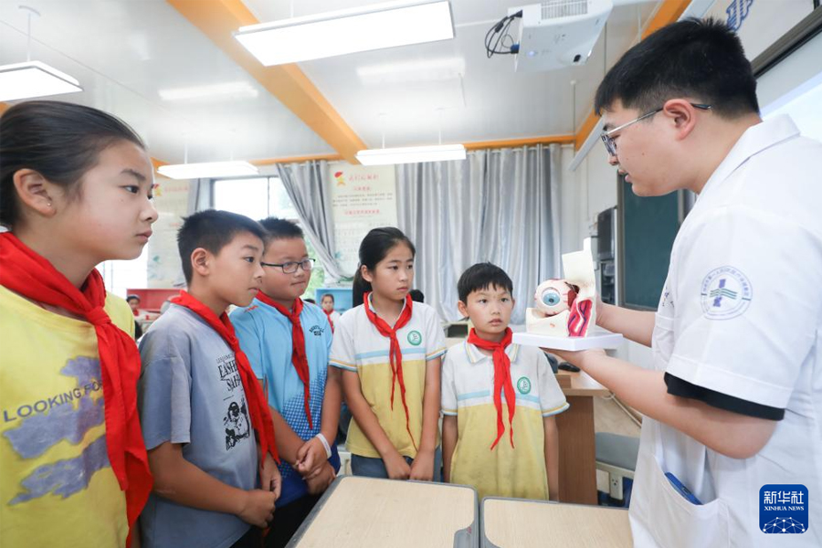 1/06月7日,在云南開遠市考點,送考老師身著寓意“開門紅”的紅色T恤為同學們加油。(新華社發(fā) 陶家淇/攝)