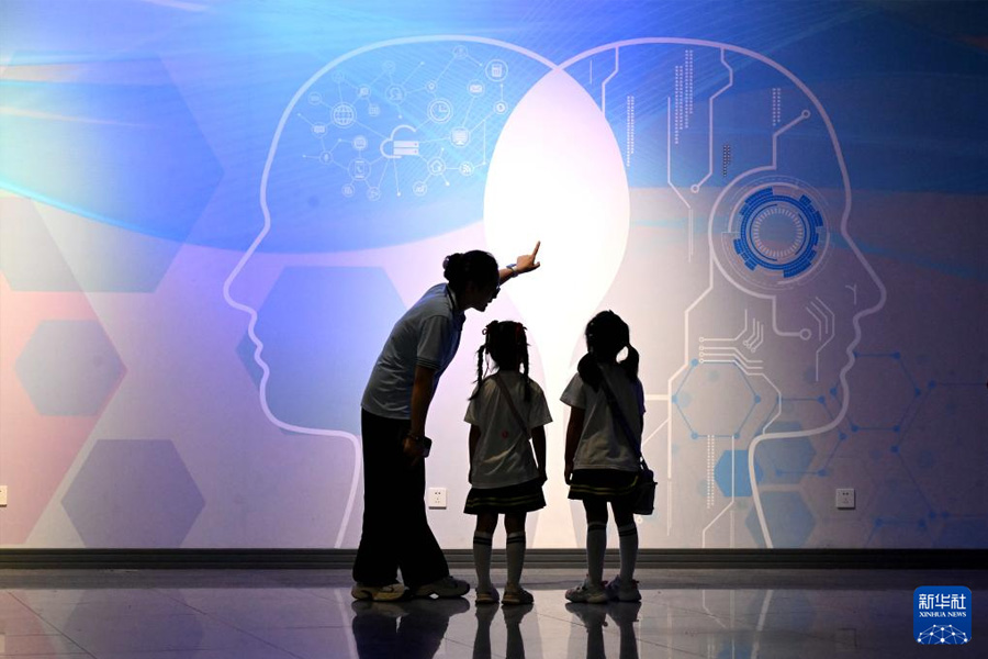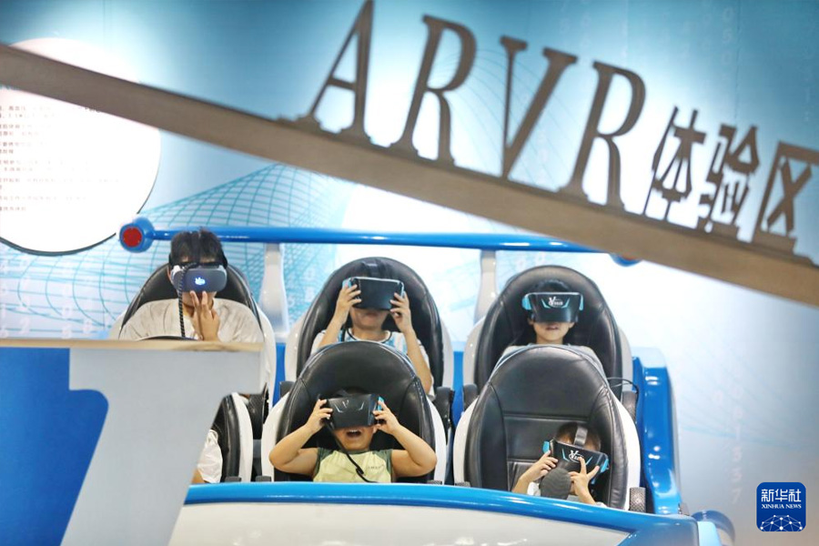 1/07月12日,在浙江省嘉興市科技館,小朋友在體驗(yàn)人工智能ARVR裝置。(新華社發(fā) 金鵬/攝)