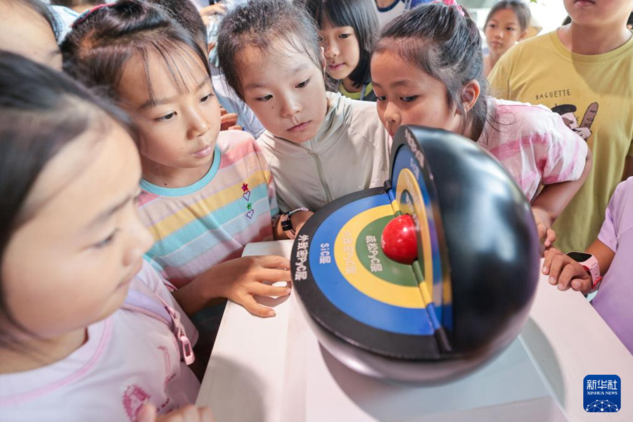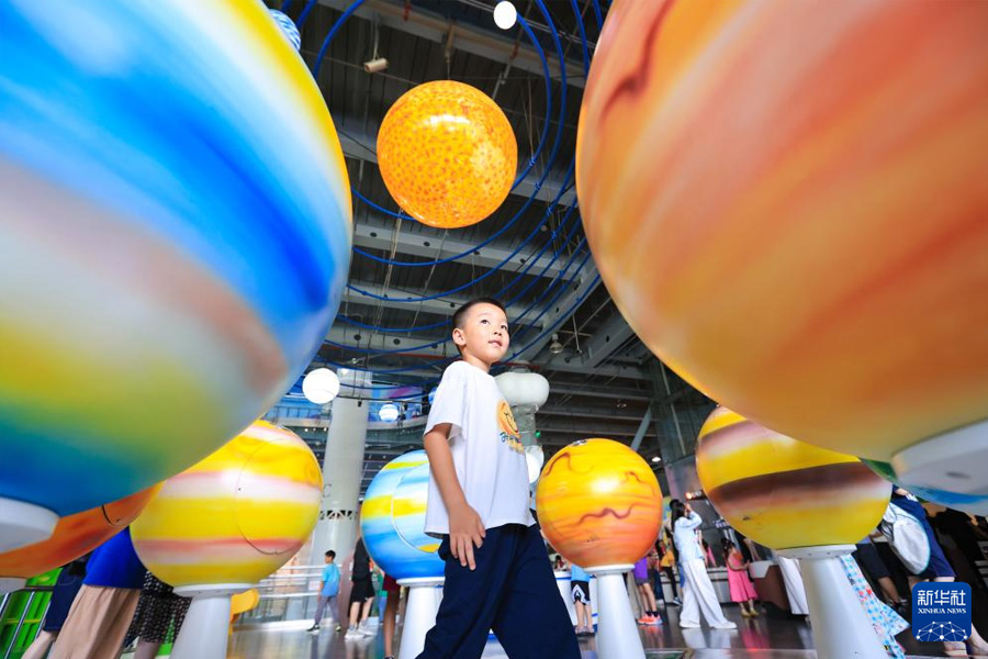 1/07月26日,小朋友在南京科技館觀看科普裝置。(新華社發(fā) 蘇陽/攝)