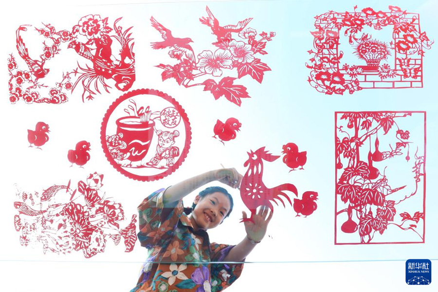 1/08月9日,河北省唐山市豐潤(rùn)區(qū)燕山路街道欣園社區(qū),小朋友在制作剪紙作品。暑假期間,各地孩子參加豐富多彩的文化體育活動(dòng),充實(shí)假期生活。(新華社發(fā) 朱大勇/攝)