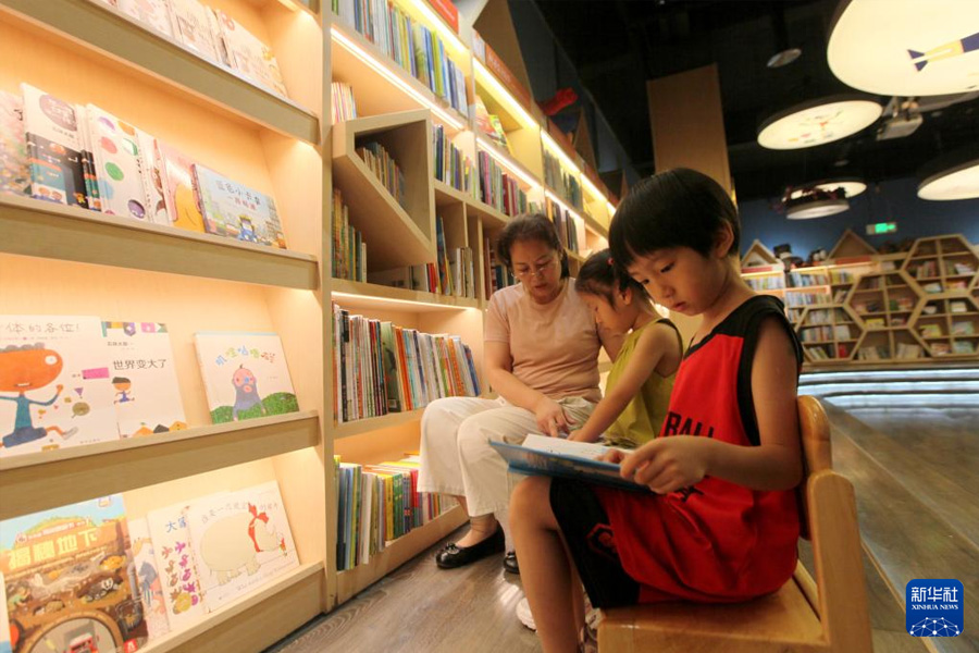1/08月10日,小朋友在山東省臨沂市平邑縣新華書店閱讀圖書。(新華社發(fā) 武紀(jì)全/攝)