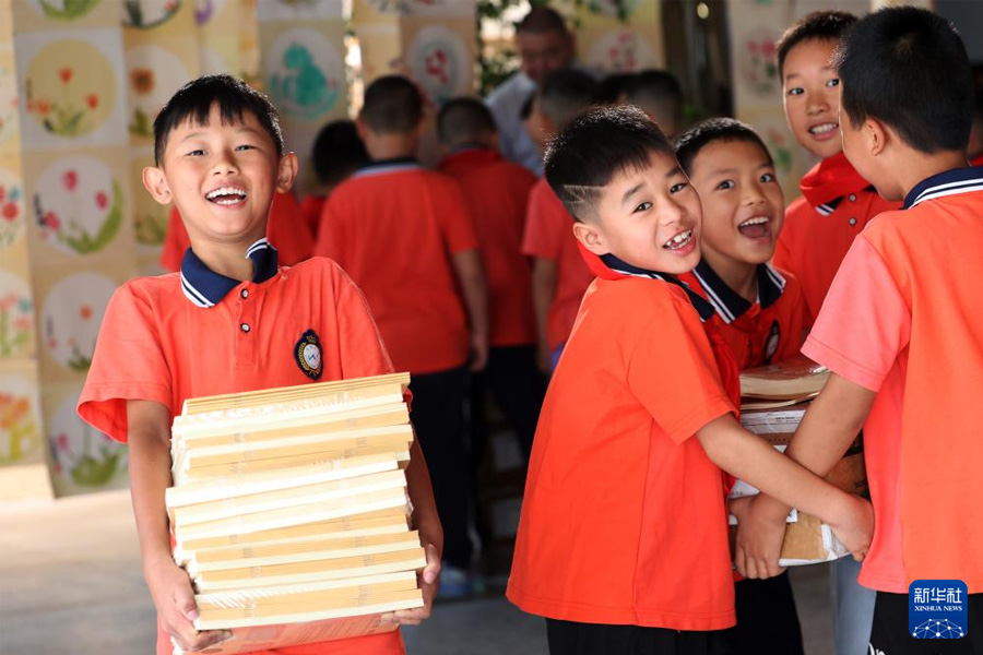 1/09月1日,重慶市黔江區(qū)武陵小學(xué)二年級(jí)學(xué)生在領(lǐng)取新書(shū)。(新華社發(fā) 楊敏/攝)