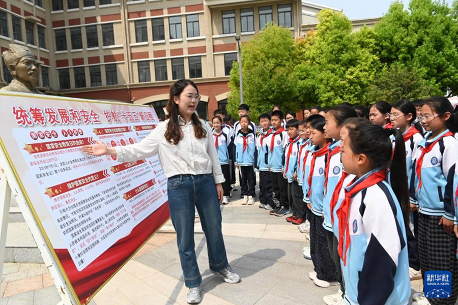 1/04月14日,在河南省沁陽市朱載堉學(xué)校,老師為小學(xué)生講解國家安全知識。(新華社發(fā) 楊帆/攝)