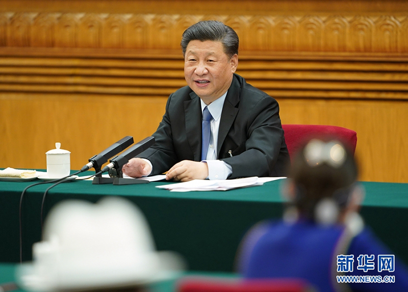 5月22日,中共中央總書記、國家主席、中央軍委主席習(xí)近平參加十三屆全國人大三次會議內(nèi)蒙古代表團(tuán)的審議。(新華社記者 謝環(huán)馳/攝)
