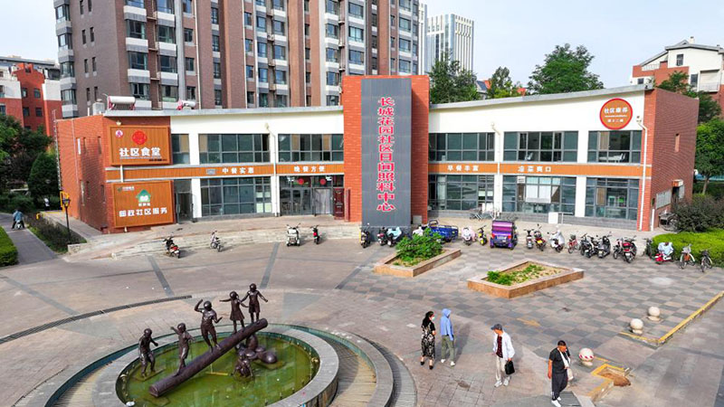 這是2024年6月20日拍攝的寧夏銀川市金鳳區(qū)長城花園社區(qū)日間照料中心(無人機(jī)照片)。(新華社記者 馮開華/攝)