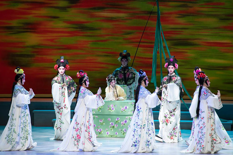 2024年9月14日,演員在北京大學(xué)百周年紀(jì)念講堂演出青春版昆曲《牡丹亭》。(新華社記者 劉夢琪/攝)