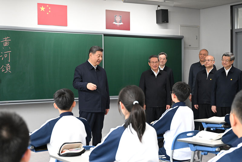 3月23日,中共中央總書記、國(guó)家主席、中央軍委主席習(xí)近平在河北雄安新區(qū)考察,并主持召開深入推進(jìn)雄安新區(qū)高質(zhì)量建設(shè)和發(fā)展座談會(huì)。這是23日上午,習(xí)近平在北京四中雄安校區(qū)考察時(shí),走進(jìn)教室同師生親切交談。(新華社記者 謝環(huán)馳/攝)