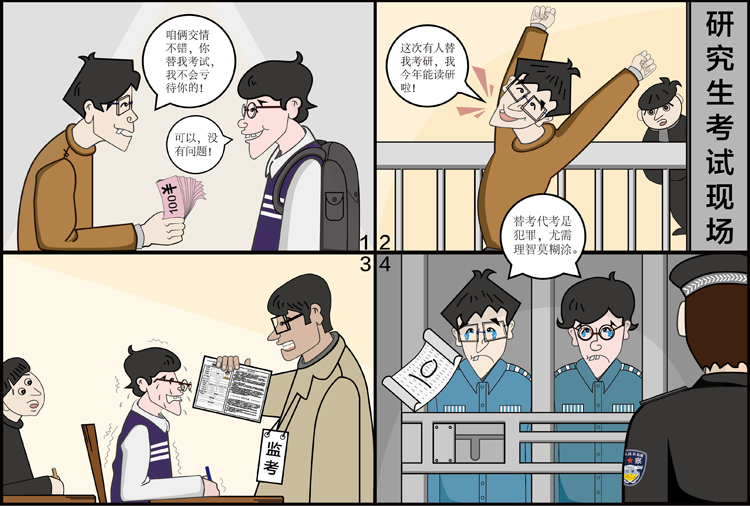 替考代考是犯罪,尤須理智莫糊涂。(中央美術(shù)學院 田金雪/繪)