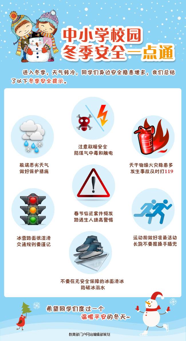 【溫馨提示】為方便老師和同學(xué)們學(xué)習(xí)安全知識,我們制作了“中小學(xué)校園冬季安全一點(diǎn)通”演示文稿,供大家下載使用。