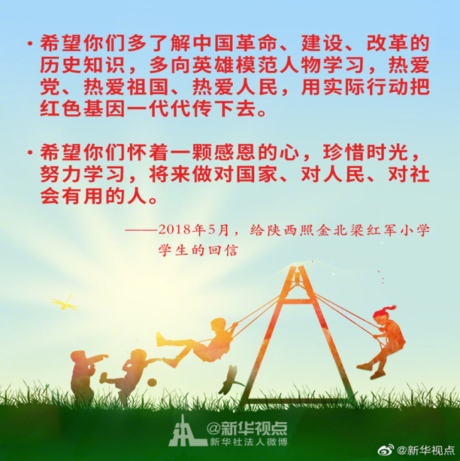 少年兒童是祖國的花朵,民族的希望。幼有所育,讓每一名少年兒童都能伴隨著時代的腳步茁壯成長,是全社會共同的心愿。習(xí)近平總書記始終關(guān)心少年兒童的身體健康和成長成才。黨的十八大以來,習(xí)近平總書記這樣說?