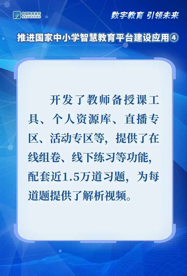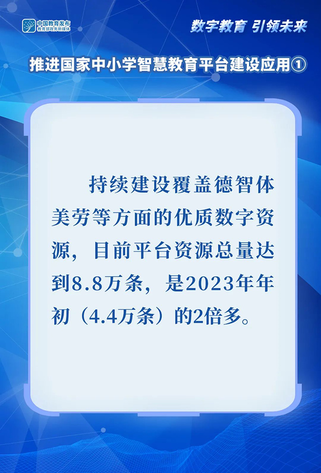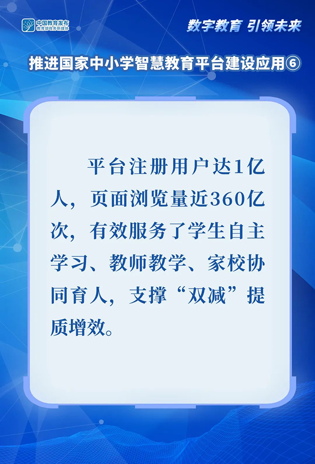 2024世界數(shù)字教育大會將于1月29日-31日舉辦。即日起,教育部政務(wù)新媒體推出系列圖解,帶你了解我國推進(jìn)教育數(shù)字化工作和建設(shè)學(xué)習(xí)型社會、學(xué)習(xí)型大國相關(guān)舉措。今天,一起來看國家中小學(xué)智慧教育平臺建設(shè)應(yīng)用工作進(jìn)展——