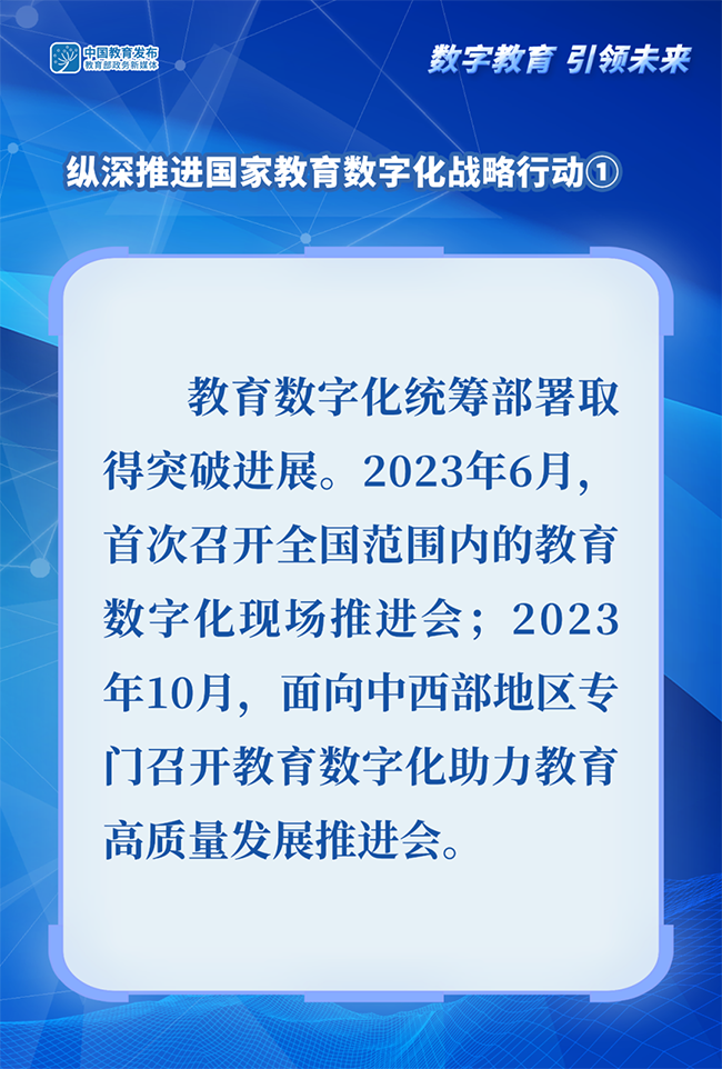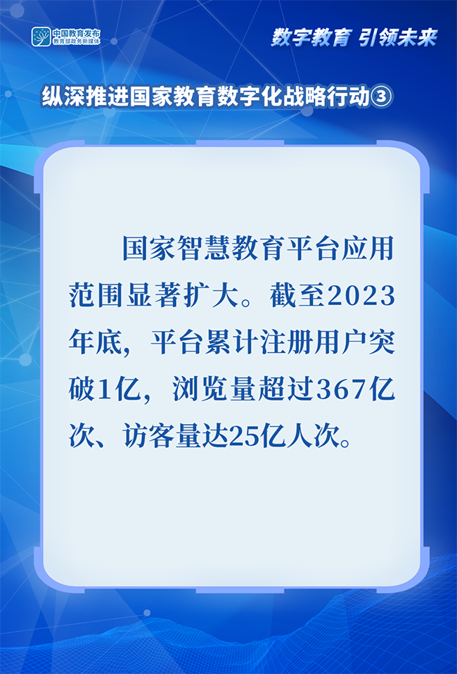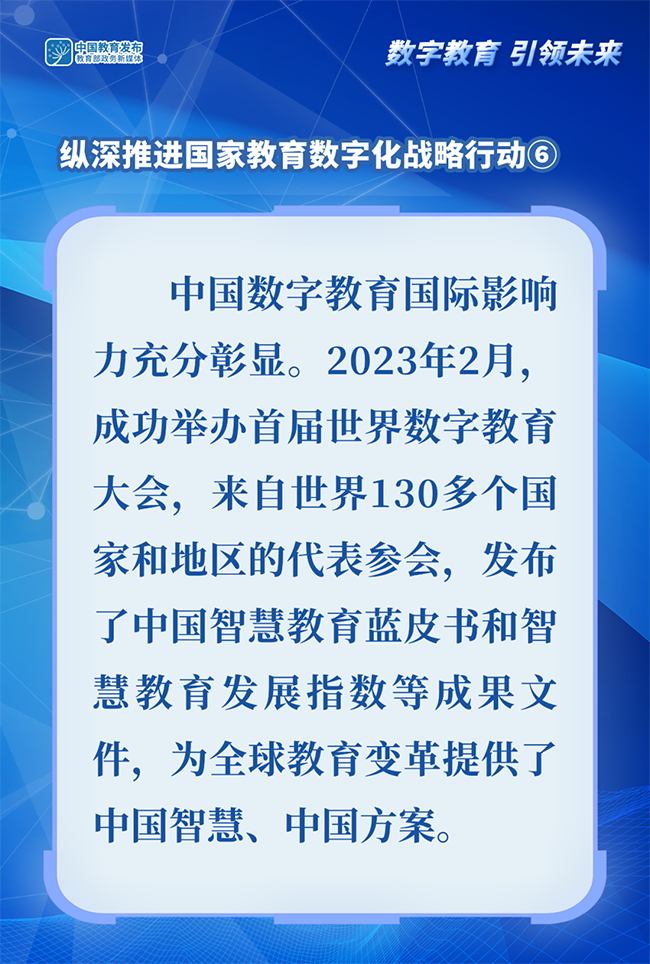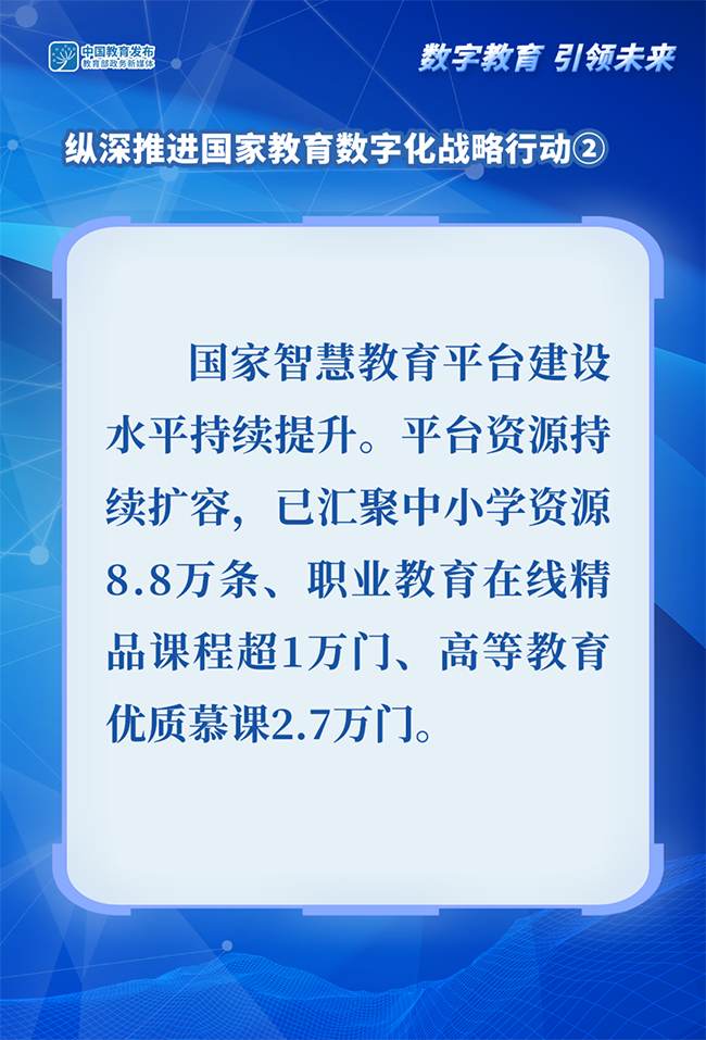 2024世界數(shù)字教育大會于1月29日-31日舉辦。教育部政務新媒體推出系列圖解,帶你了解我國推進教育數(shù)字化工作和建設學習型社會、學習型大國相關舉措。今天一起看如何縱深推進國家教育數(shù)字化戰(zhàn)略行動——