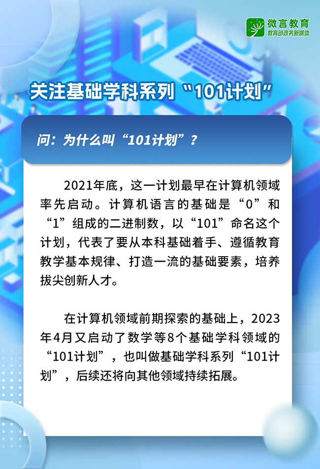近日,基礎(chǔ)學科系列“101計劃”工作推進會暨計算機“101計劃”成果交流會在京召開,明確相關(guān)重點任務?;A(chǔ)學科系列“101計劃”究竟是什么?為什么叫“101計劃”?瞄準的目標是什么?有哪些創(chuàng)新做法?一組大圖帶你了解——