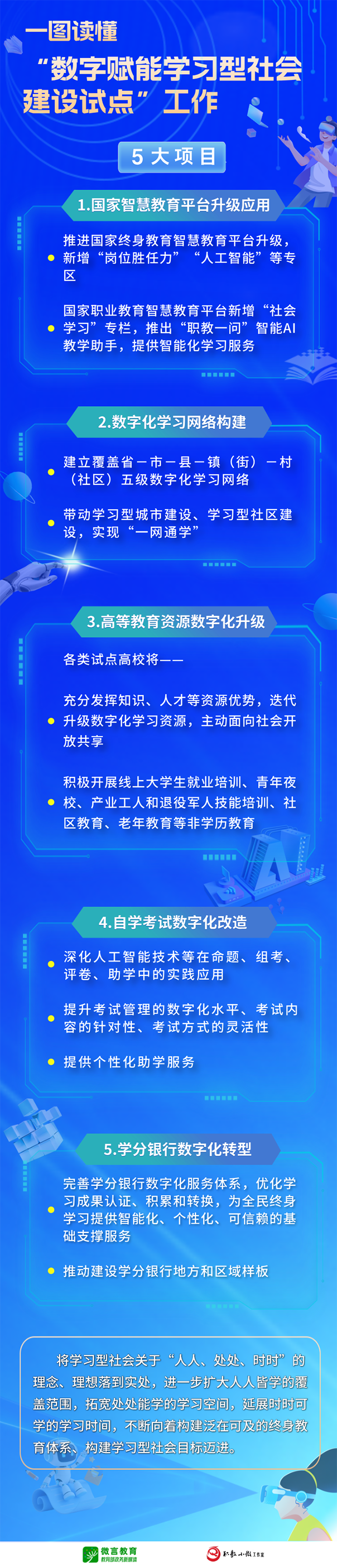 教育部部署“數(shù)字賦能學(xué)習(xí)型社會建設(shè)試點”工作,圖解5大項目