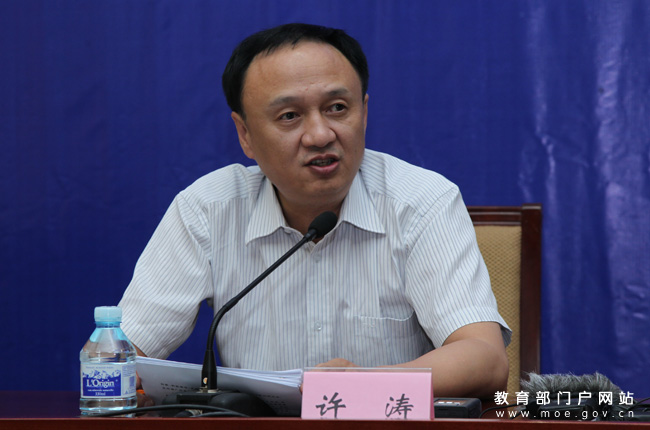 教育部教師工作司司長(zhǎng)許濤介紹《鄉(xiāng)村教師支持計(jì)劃(2015-2020年)》總體情況。(中國教育報(bào)記者 張勁松攝)