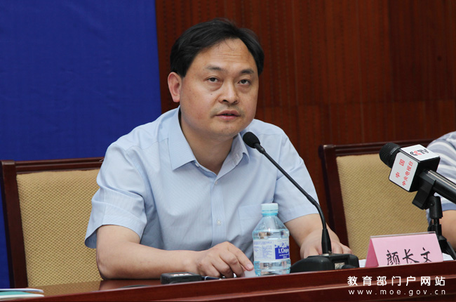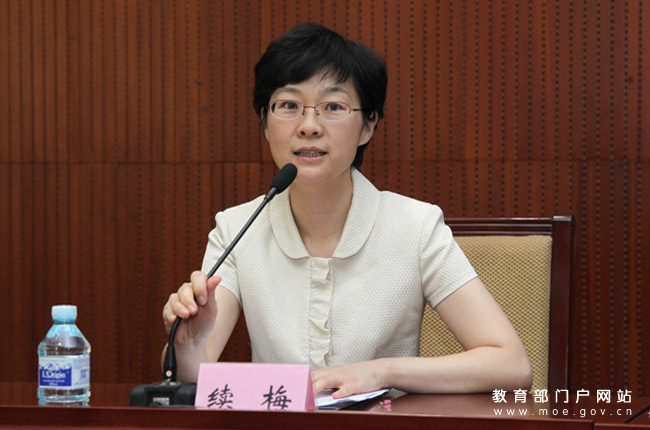 教育部新聞發(fā)言人續(xù)梅主持發(fā)布會(huì)。(中國教育報(bào)記者 張勁松攝))