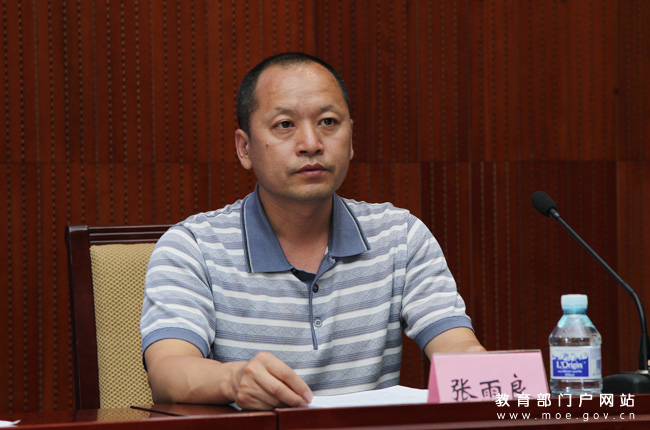 北京市延慶縣大榆樹鎮(zhèn)大榆樹中心小學(xué)教師張雨良介紹提升鄉(xiāng)村教師師德修養(yǎng)和教書育人水平有關(guān)體會(huì)。(中國教育報(bào)記者 張勁松攝)