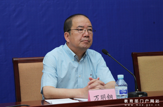 西北師范大學(xué)副校長(zhǎng)萬明鋼介紹加強(qiáng)師范生培養(yǎng),提高鄉(xiāng)村教師來源質(zhì)量有關(guān)情況。(中國教育報(bào)記者 張勁松攝)